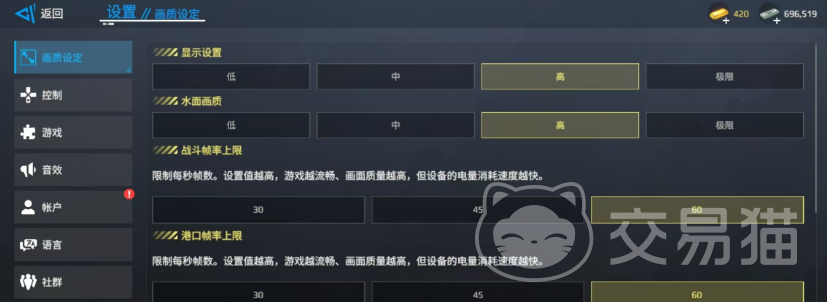 另外,港口帧率上限也是一项非常有趣的设置。你可以将它调整到最大值,以便在停靠港口时也能享受更高的画面质量。这里不但有舰船的精致建模,还有港口环境的细节,都能让你更加享受游戏中的每一刻。而在战斗时,如果你对帧率没有过高要求,可以适当调低战斗帧率的上限,这样可以确保游戏的稳定性,避免因帧率过高导致的卡顿现象。