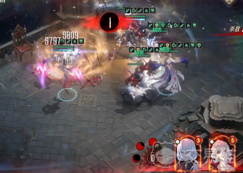 接着就是中途战斗了,对面基本上都是吸血鬼小怪以及大怪,可以优先秒掉大怪,因为大怪的输出火力比较猛,而小怪多数都是远程模式,伤害不算高可以后面满满磨掉,优先让所有人集火敌方最大的怪物,击杀以后我方应该还存在3个人,之后再慢慢磨掉小怪就可以获得游戏胜利了!