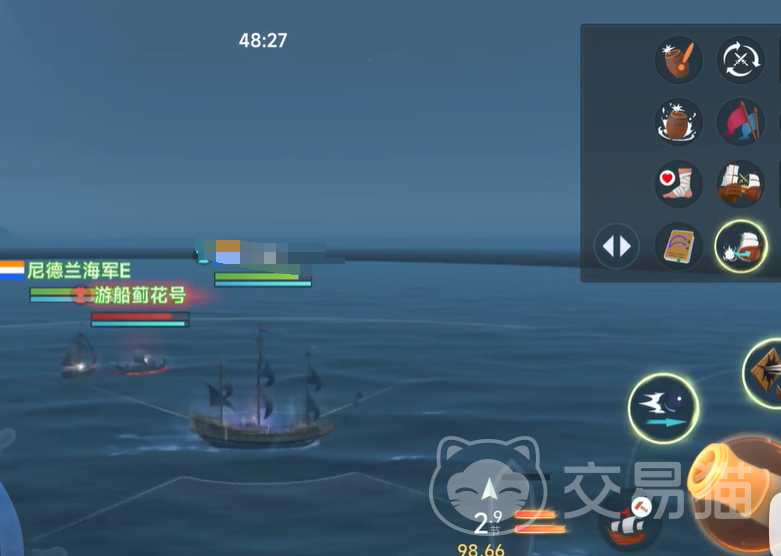 接下来可能还剩下4只船舰,大概在吸引一艘船舰就可以了,也是对准最远的一艘船,等这艘船脱离蓟花号包围的情况下,玩家们就可以将其一炮带走,接下来剩三艘船了,这时候对面的船只就会打乱开始分散。