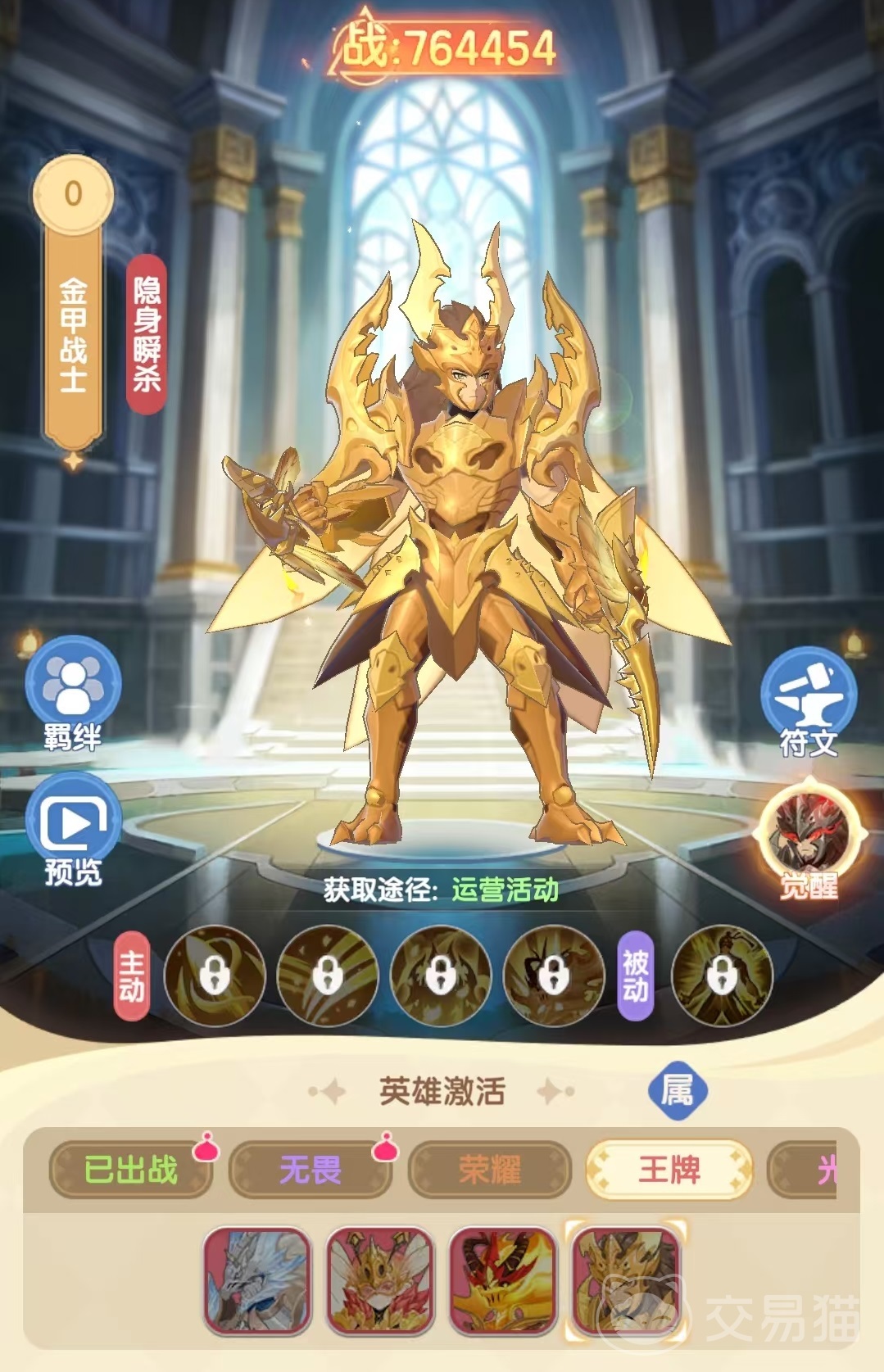 第2个推荐的是金甲战士,这个英雄不仅外观非常霸气,更是具有很强的隐身瞬杀能力。它的被动刺客信条,可以在敌方攻击其他的英雄目标时,对其造成伤害并触发闪击效果。主动技能瞬身突袭,直接突到目标身前,对目标以及周围多个单位造成伤害,同时获得能量。光学隐身技能更是可以使金甲战士进入隐身状态,在攻击对方时突发破隐一击,附加高额伤害,直接秒杀对手。