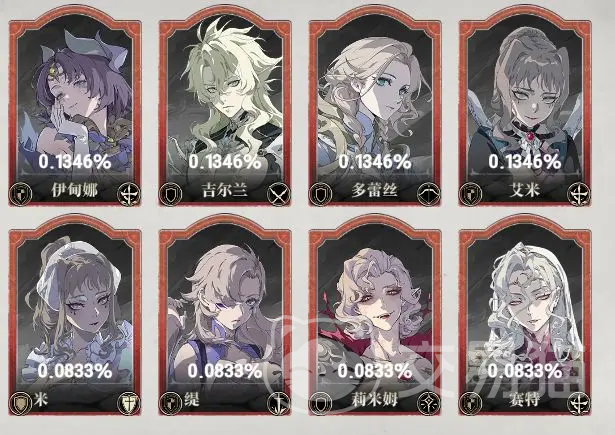 普池当中会有SSR,SR,R眷属产出,6张R眷属,基础的概率是53%;AR眷属有7张,基础概率大致是43%,获得SSR的几率是4%,其中有26名角色是始祖,始祖眷属的获取难度会更高一些,但是大多数都会拥有更高的强度。