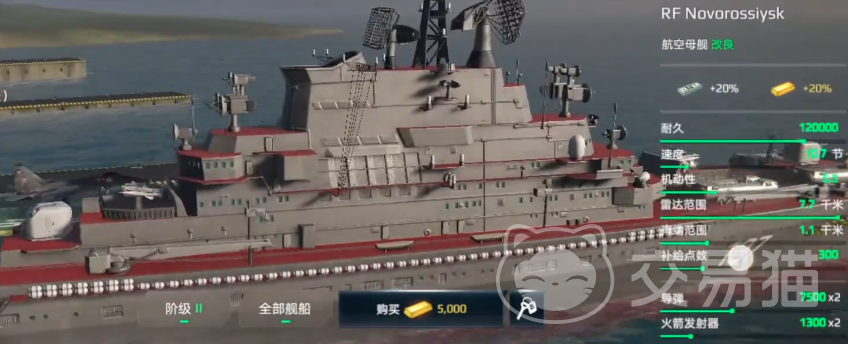 新罗斯克号,在二级房中拥有极强的火力压制能力,备2导弹、2火箭炮、1攻击机、1战斗机,还带有一门属性非常优秀的自动炮,整体武装非常全面。不仅能对空对海造成有效压制,还能对抗多方向威胁,唯一缺点就是贵。