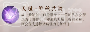 至于天赋“缠丝共舞”,它的作用更像是一种战斗的引导。战斗开始时,诸葛诞会根据场上的队友顺序,选择一位作为舞伴。而有意思的是,如果场上有诸葛瑾,他将优先选择自己哥哥作为舞伴。这一设计,也给诸葛兄弟的组合提供了更多的战术选择,能够迅速提升整体作战效率。