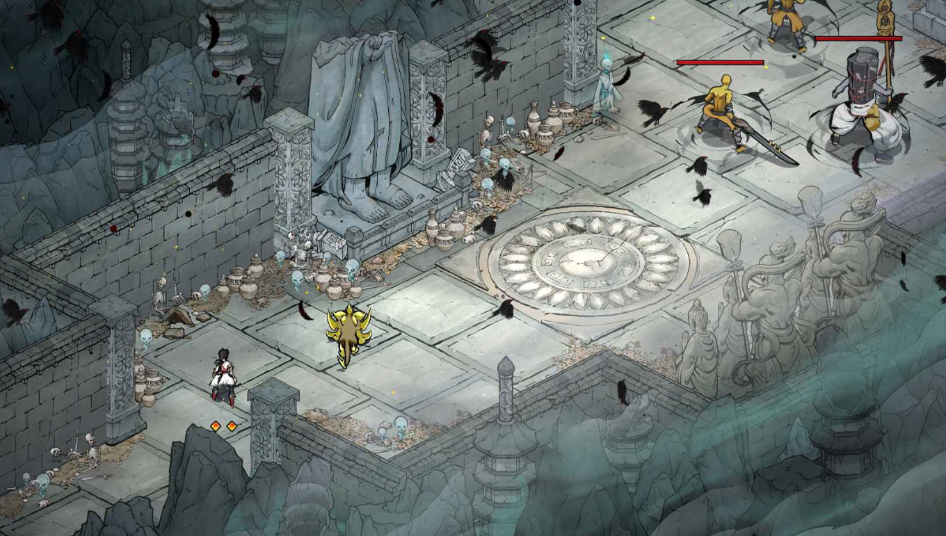 游戏靠着东方气息浓厚的场景以及水墨画风,打造出了一个充满豪情和洒脱的江湖世界,大家在其中将扮演侠女丹朱,操控她及其伙伴,靠着狐族的不死能力,穿过各种危机四伏的禁地,挑战有着自己过往故事的boss和最终的“书灵”,逃离这个恒常不变的书中世界,改变所谓的天意。