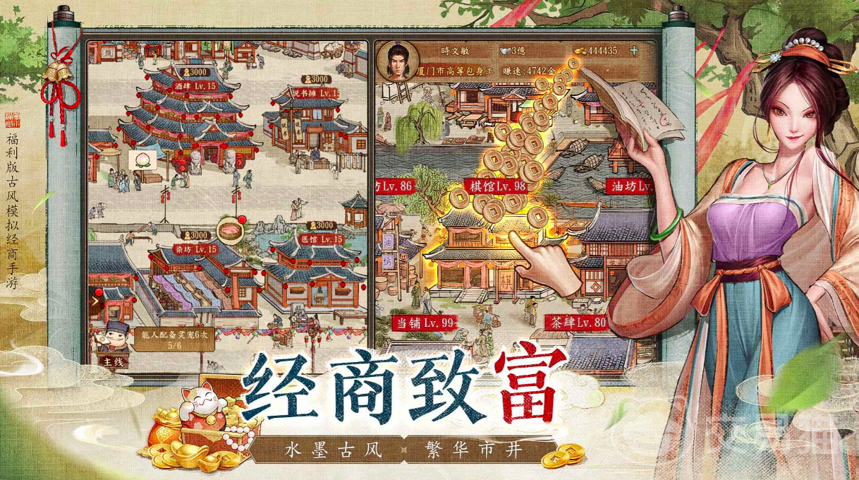 除了这些还可以招纳闲事,如招揽生意的店小二,算计能力超凡的秀才,管理能力非常好的老掌柜,帮助玩家一起经营店铺,无论是做店经商。还是组织商队游走四方,都为玩家带来不可估量的财富。