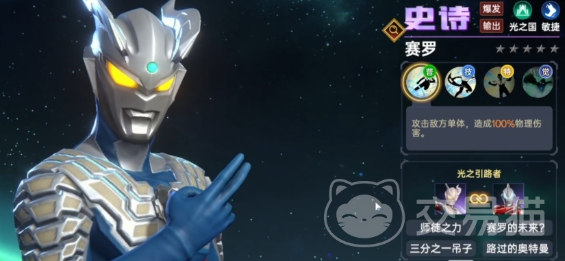 当然,还有一位人气很高的英雄就是赛罗,也是值得玩家们重点培养的对象,赛罗作为一名主打爆发伤害的输出型英雄,其个人能力极其强悍,而且赛罗能够形成的羁绊类型丰富多样,他可以与布莱泽、迪迦等主流英雄默契配合,共同打出威力惊人的组合技,这种强大的适配性使得赛罗在各种战斗阵容中都能上场搭配,此外赛罗的技能偏向于单体爆发伤害,这一特点使得他在面对boss等强大敌人时,能够发挥出独特的优势,可以瞬秒低血量领主怪物。