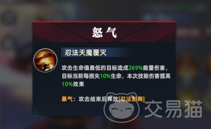 怒气技能则是服部半藏斩杀敌方生命值较低单位的利器,它能够迅速锁定敌方生命值最低的目标,并释放出高额的能量伤害,更为关键的是这一技能的伤害会随着目标当前生命值的降低而进一步升高,形成了一种完美的斩杀机制,也就是说当敌人的生命值岌岌可危时,服部半藏的怒气技能便成为了最后的一击,而在爆气的强化下,怒气技能在攻击结束后还会释放忍法影舞,这一额外的效果能够对敌人造成进一步的打击。