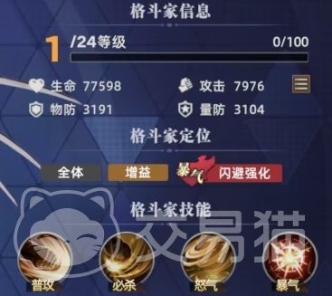 就蔡宝奇而言,他在游戏中被定位为辅助性角色,在战斗过程中,只要队友每次成功打出轻拳,蔡宝奇便能够额外恢复怒气,这一技能机制使得他在团队轻拳攻击频繁的场景下,能够快速积攒怒气,为后续技能的释放创造有利条件,而当蔡宝奇释放一次重拳后,便可解锁爆气状态,此时他将提高5%的最终免伤效果,这一属性提升在面对敌方的强力攻击时,能够增强自身的生存能力,使其在战场上站得更稳,为团队提供更持久的辅助支持。