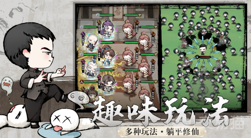 乱世江湖和传统的江湖类手游有很大的不同,虽然玩家也可以在游戏里探索战斗,但里面设定的并不是常规的对战,而是充满随机设定的弹幕肉鸽玩法,玩家可以以这种比较轻松趣味的方式,加入到江湖中不断冒险,为了能让玩家有更多的选择,在游戏里会设定大量的角色,玩家可以根据他们的特性,进行一场自由的放置对战。