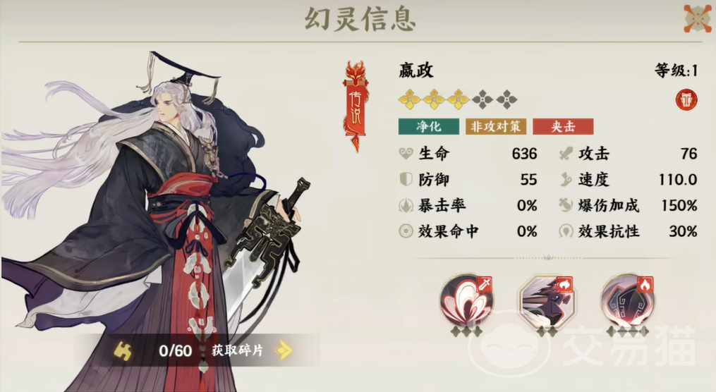 最后,嬴政作为一名前排幻灵,能够通过普攻给敌人造成伤害,并为后排队友提供夹击机会。更重要的是,他的被动技能能在敌人释放非攻击技能时净化负面效果,为自己和队友提供额外的保护。他的能量技不仅造成全体伤害,还能让暴击率提升,为队友提供强有力的输出支持。