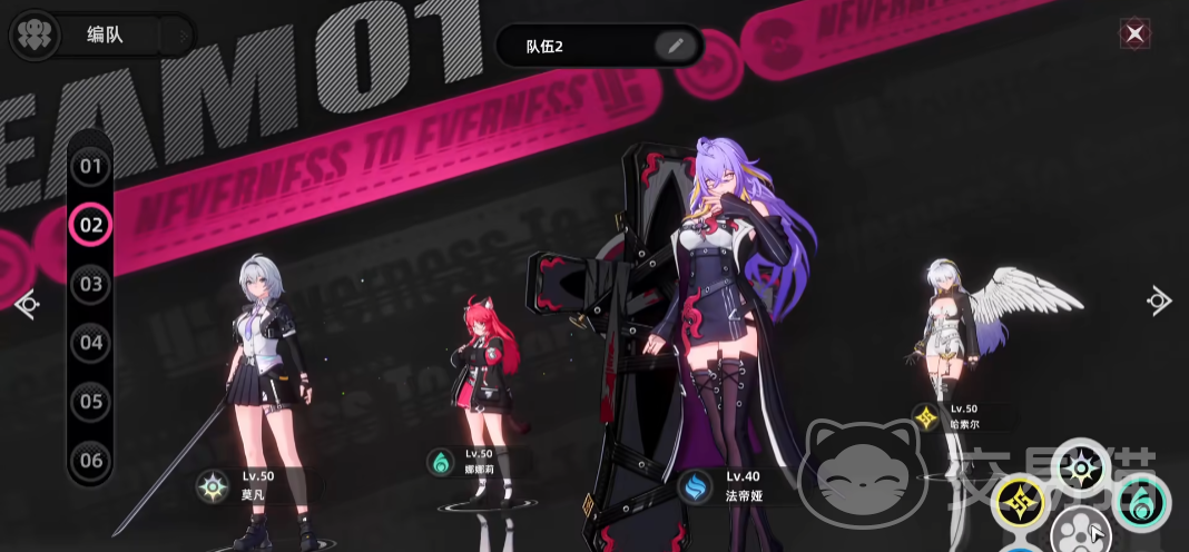 战斗机制之后,就是关于配队方面,由于角色的属性比较多,就能衍生出N种不同的环合反应,最基础的比如光和零的反应能打出创生花,除此之外还有削弱BOSS的机制,以及DOT类的。根据不同的组合就能同时打出三到四种的混合反应,就可以组成以不同环合为核心的各种不同的队伍,比如说召唤队,DOT队,诅咒队等等,后期就会变得十分的自由,十分丰富。每个角色都有一种独特的天赋,可以加强对应的环合反应,比如娜娜莉是加强创生,在队伍界面,是能看到角色的特殊强化天赋的,开启后,会对队伍的环合展开强化,所以配队要考虑数值,还要考虑天赋对队伍整体的影响。
