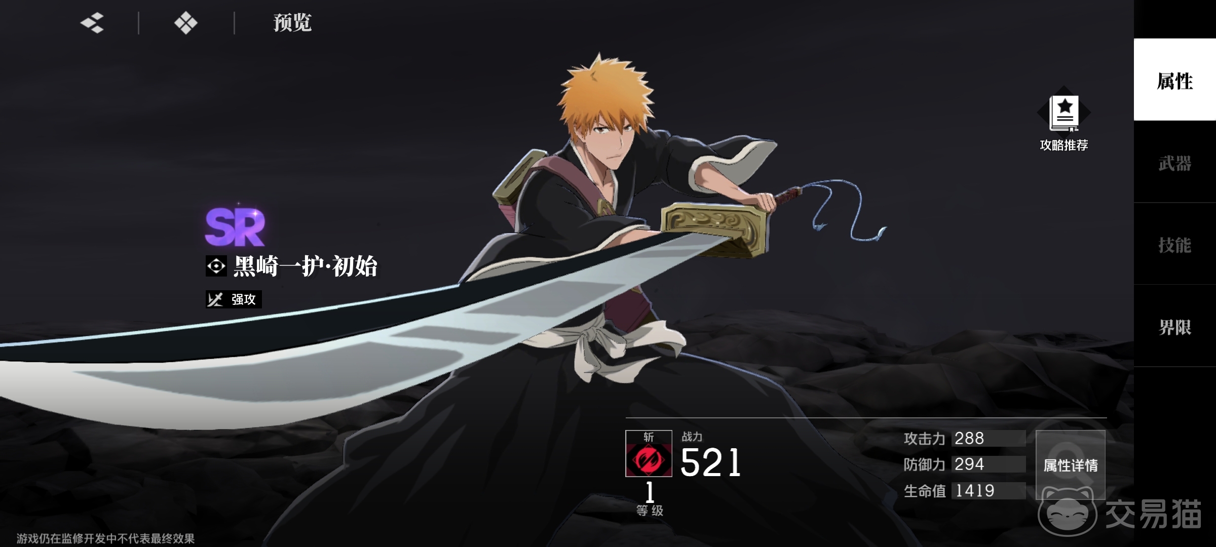 主角一护虽然目前只是SR品级的角色,但他的整体机能丝毫不逊色于那些SSR,是一个手感很不错,输出也很高的强攻角色。一护普攻4段高倍率伤害并且可以积攒灵压,满能量可以长按普攻衔接更大范围的攻击。战技旋转斩击并跳入空中衔接攻击,还可以将敌人挑飞再刺入地面,然后释放全部灵压造成高额伤害。必杀技则是经典的月牙天冲,挥出气刃穿透沿途敌人。封灭则更是强大的格挡技,在敌人特殊攻击的瞬间点按可以封锁敌人的行动,随后衔接普攻打出高额的伤害,并使敌人受斩系伤害提升。