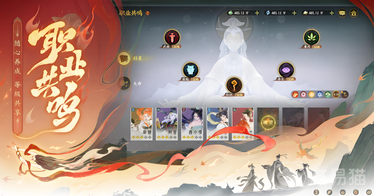 在游戏的抽取卡池中,涉及到常驻卡池和限时限定卡池,在卡池的幻灵上拥有多个内容,每个幻灵都有自己的特点,哪怕是同属于一个类型会在技能上略有不同,如果说每个幻灵都需要大量的道路来养成的话,对于玩家来说肝度会很高,所以玩法中开启了“职业共鸣”玩法。在共鸣上分为了职业共鸣和天命共鸣,天命共鸣是指天命技能,每个幻灵除了固有的技能之外,在解锁了天命之后还能解锁天命技能,有了共鸣之后只要同属性中一个幻灵开启了天命,其余相同属性的幻灵也能开启天命技能。