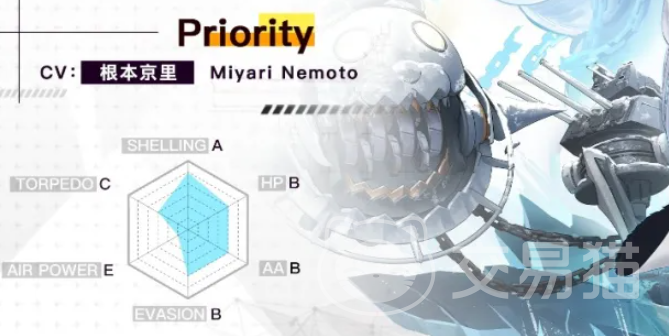 在六维图中可以看到炮击A雷击C,应该是一艘重炮击,同时可以发射鱼雷武器的轻巡,可能坦度不是很高,这艘船在wows中就比较一般,不弱,但缺乏特色。游戏中以及也会实装其科研主炮三联装的180mm。