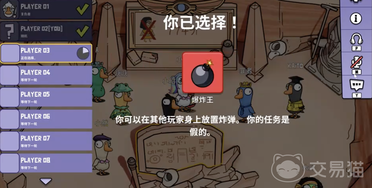游戏玩法十分多样。有常规的抓内鬼模式,就像经典的狼人杀,大家在推理中找出隐藏的鸭子。还有惊心动魄的追逐战,鸭子追着鹅跑,紧张又刺激。躲猫猫模式更是充满新奇感,一方躲一方找,乐趣无穷。一键开启就能秒速匹配,十几位玩家在同一个场地一决高下,只有一方阵营能成为最终获胜者。