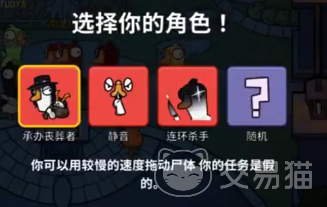 中立阵营的玩家同样有任务需要完成。开局或玩家们可以选择自己的角色,每个角色都有着各自不同的技能,比如说正义使者可以在每场游戏中击杀一名玩家,警长鹅在杀死中立或者鸭子阵营的玩家之后不会受到任何惩罚,但一旦杀死同阵营玩家就会立刻出局。