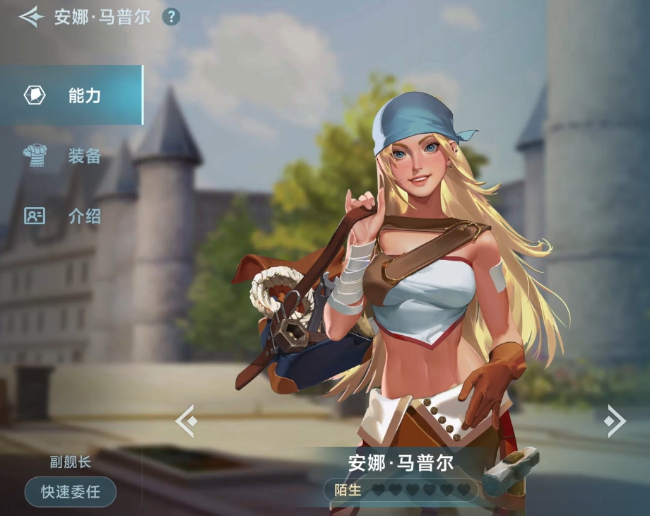 安娜是玩家所能获得的第一个航海士,她的技能多与修船有关,可降低出海的损耗,而且她的个人能力也很突出,适合放在探险队里。