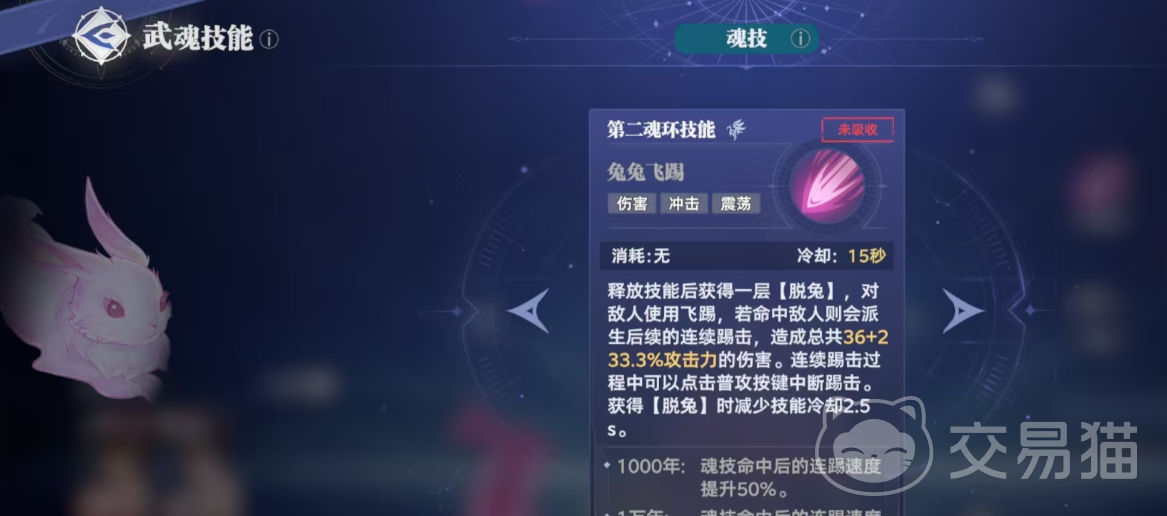 柔骨兔这种武魂对单体能造成高额的伤害,攻击的时候凭借极快的速度能够从四面八方对敌人进行攻击,在攻击对手时还可以把脱兔的层次给叠加起来。