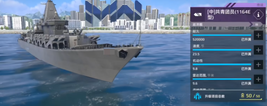 完全颠覆了巡洋舰的输出逻辑,其最恐怖之处在于最多13枚导弹的同时发射能力,在导弹战为主的战局中几乎无人能敌。即便敌方拥有高性能防空系统,也难以完全阻挡其饱和式齐射所带来的压迫力。尤其在诱弹配合到位的情况下,共青团员号能够瞬间打出20万+的灌伤,实现跨地形斩杀。此外,凭借22节航速与52万血量,它拥有良好的战略转点能力和生存空间。不过随着防空航母的崛起(如宙斯盾、武藏),她的“暴力打法”已略显力不从心,但其战略价值仍不可小觑,是导弹战术流派中不可忽视的代表。