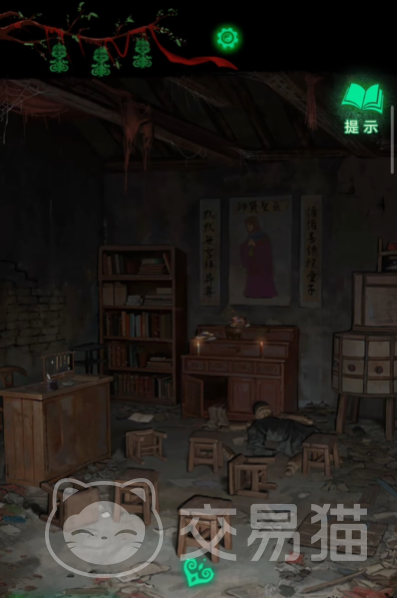 离开民居,在村口石碑嵌入石片,按笔画线索点击石块开启学堂门,进入学堂与木偶手互动,用玩具手枪换到直尺,之后利用直尺从另一房间墙缝挑出红绳,回到学堂将红绳用于西洋镜,查看西洋镜获取线索,据此调整书桌物品得到风铃,回到村口,触发剧情后,将风铃挂在特定架子,获取门锁线索阳阴鬼仙凡,前往村长家二楼输入密码进门,在屋内冰箱用棺材钉打开小棺材拿到短木条,砸开墙壁砖块按线索调整箱子得到朱砂。