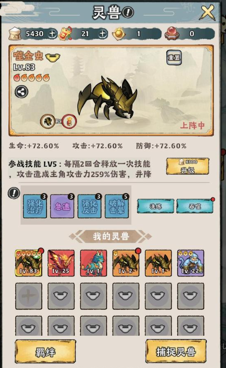 噬金虫身为橙色品质灵兽,在御兽符商店就可以兑换,或是通过完成主线任务获取,对零氪玩家极为友好,它每两回合便能释放一次技能输出节奏稳定,无论是前期过渡,还是中后期作为稳定输出点都表现出色,日常挂机刷资源时,噬金虫能持续稳定地贡献伤害,助力玩家高效积累资源提升自身实力,将其培养至一定等级后,搭配奔雷四件套功法提升连击率,可进一步强化输出能力,在多种玩法中发挥重要作用。