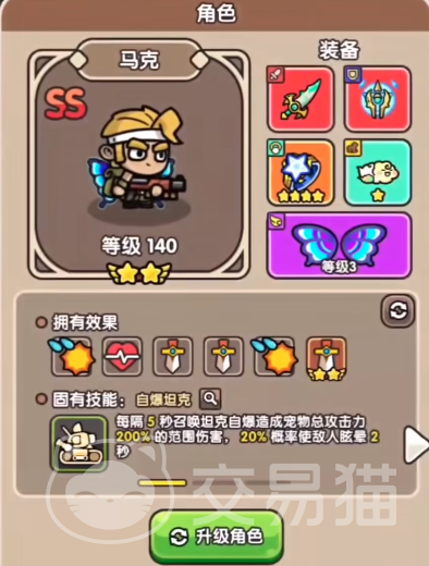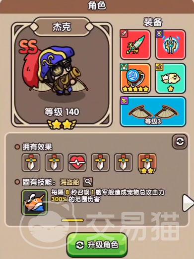 游戏里的英雄角色非常多,其中最推荐的就是杰克,这个英雄可以召唤军舰,军舰可以带来宠物总攻击力300%的伤害,在升级之后角色的能力会变得更加优秀,战斗的时候还可以利用自身的技能给对手带来眩晕,技术玩家可以优先使用这个角色战斗,随着后期培养角色的星级提升到二星以后,战斗力会变得更强。