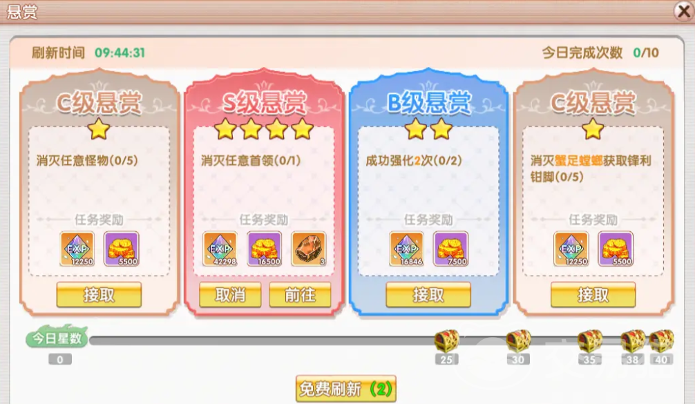每日活动很多有悬赏、跑环等,奖励丰厚,前者每天有10次完成机会,建议尽量选高星的,后者跑环则由多个小任务组成,能帮助获得可观的经验和道具,若还有升级需求,挂机刷怪也是不错的选择,建议选和自己等级相符合的区域挂机刷取,能保证经验获取效果,同时经验棉花糖等道具也可以适时用上,需要注意当升到25级时会开启精力值,此时每杀一只怪都会消耗1点,但同时也会得到额外经验,开启这个系统大家就需要合理规划精力值了。