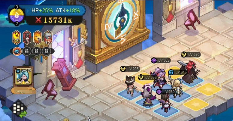 玩家可以通过搭配不同的英雄形成阵容去挑战关卡,例如可以在6名骑士还有10个站位中直接摆出一个铁桶阵容可以轻松地打败boss。游戏所采用的是复古像素美术风格会给大家呈现出一个倾斜45度的视觉角度。在战斗时像素颗粒感就会直接溢出来技能,在释放时还会具备一个炫酷的特效,可以给每一个玩家在视觉上都带来无与伦比的体验。