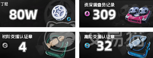 关于材料,先要看的是这角色升到满级所需要的材料,想要将这角色等级拉到满级需要80万的丁尼、309个资深调查员记录、4个初阶、32个高阶和30个统御者认证,这就是升级需要的材料了。