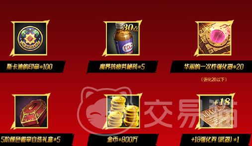 当版本7月23号上线后,首先要与大家见面的是一个送礼活动,在活动期间玩家只需要在指定时间登陆游戏,那就可以领取到一张加18的武器强化卷、100个斯卡迪印章、5个30点的疲劳药、20个一次性强化、800万的金币和5个五阶颜色徽章自选礼盒。