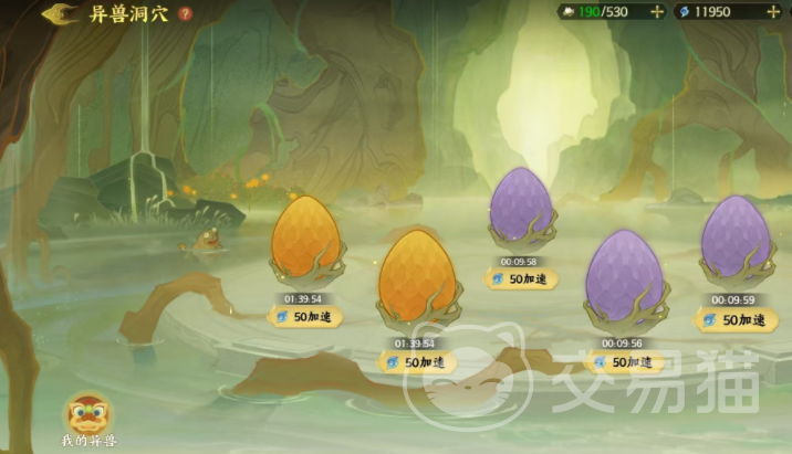 竟然是一个山海经题材的游戏,自然会有大量的异兽可以让玩家使用,想要获取异兽,玩家首先需要达成几个条件,首先就是需要解锁生命之树,只有解锁之后才能看到异兽洞穴,进入到洞穴之后就可以获得异兽蛋,玩家可以通过孵化,获得专属的异兽,每次最多可以同时孵化5个蛋,这样玩家就有机会获得5个不同的角色。