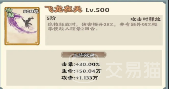在爵迹方面,如果小伙伴们手中已经拥有了飞龙在天,那么一定要带上每次释放飞龙在天时可使自己的伤害提升28%,并且有95%的概率能够使敌人在接下来的两个回合中保持眩晕效果。也就是说一旦眩晕成功,敌方有一个角色就是完全被废掉的玩家们完全可以把这个角色对着敌方的主c输出来使用,尤其是那种比较脆皮的角色,整个回合下来,如果自己这边的火力足够的话,完全够把对方秒掉。
