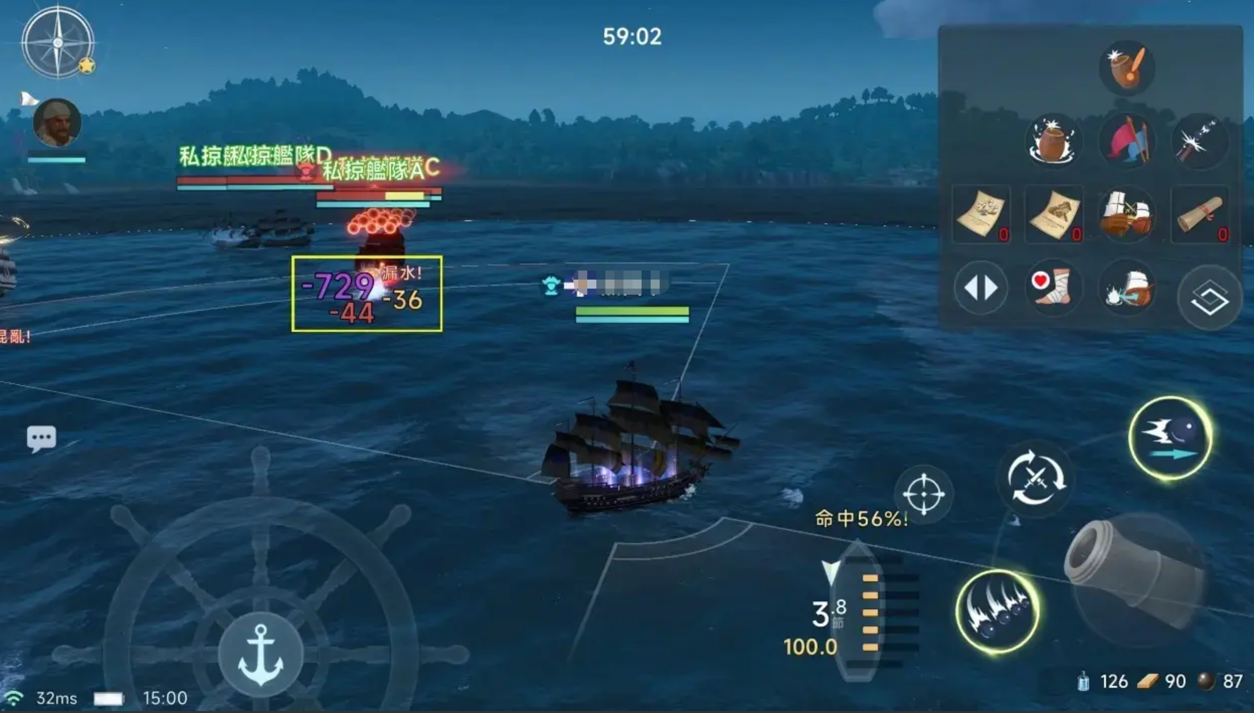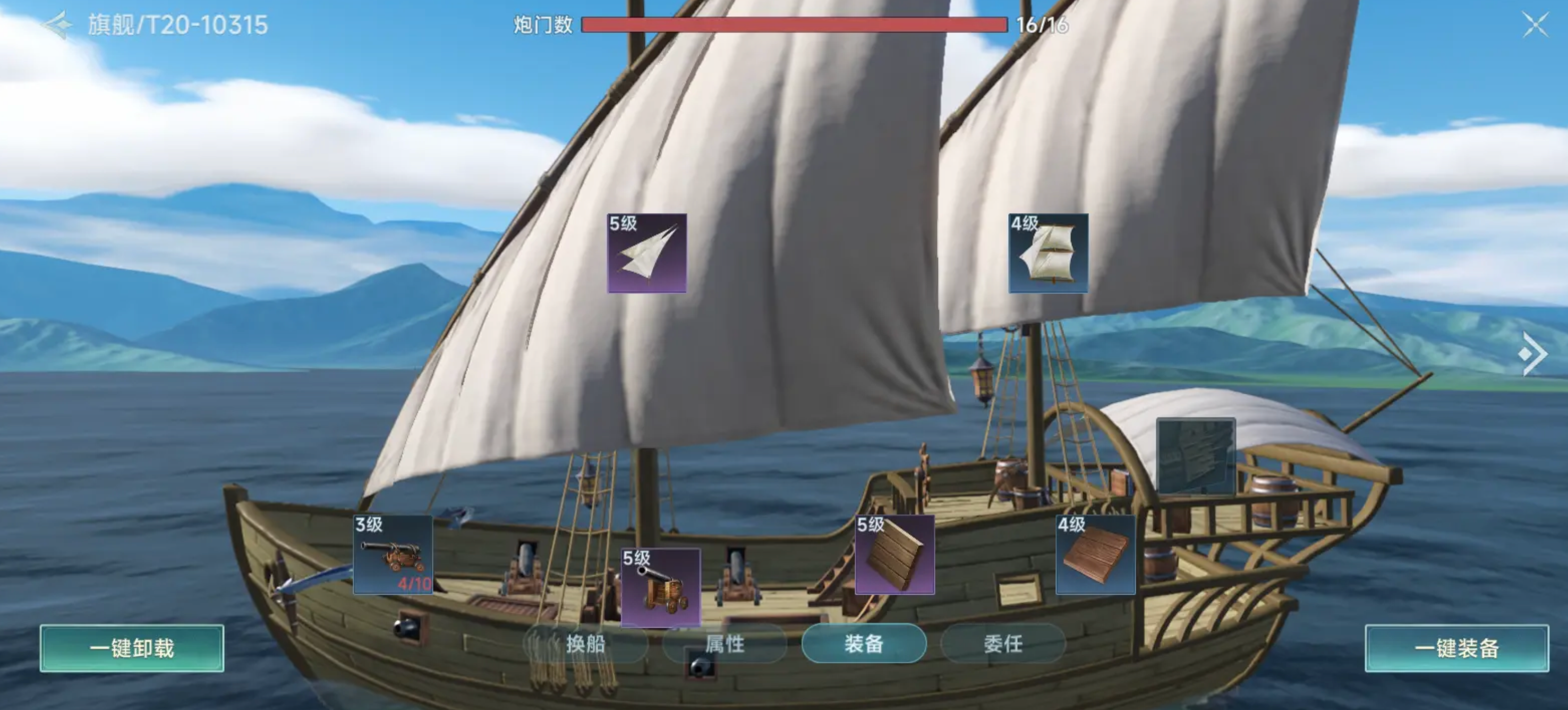 链弹炮则是一种专门针对敌舰机动性的特殊武器,攻击会直接瞄准敌舰的帆部,对航速造成严重打击。这种限制移动的特性使得链弹炮在追击或遏制敌方逃脱时有着极大优势,尤其适合搭配白刃战或近战强袭策略,为我方创造进入接战范围的机会,是偷袭与围猎流派的首选。