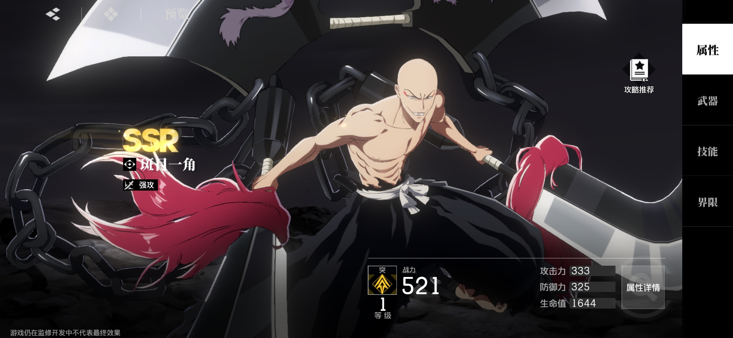 是非常强的范围输出角色,卍解后技能的强化使他在聚怪和群体输出上非常有优势,必杀技能爆发出巨大的伤害,非常适合应对多个敌人。