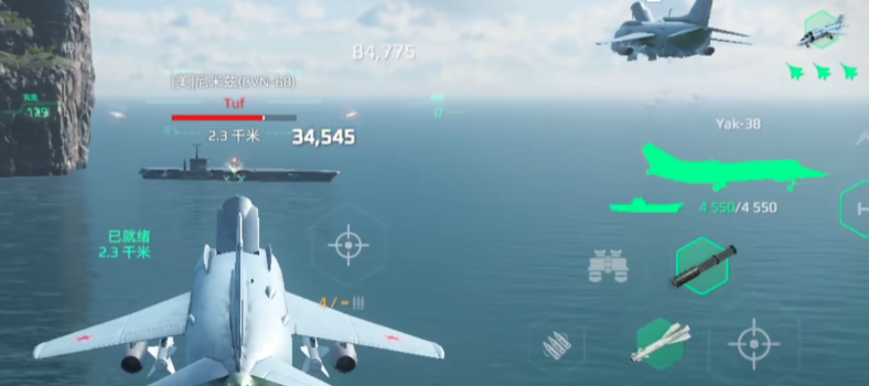 雅克-38铁匠,作为全游戏仅有的两款可悬停攻击机之一,它以45万美金的售价和4550的高耐久,在实战中主要发挥的是“固定火力点”作用。其搭载X-29导弹与无制导火箭弹,虽然导弹伤害仅2.7万略显偏低,但在悬停状态下可以实现火力连续压制,命中率更高。虽然速度表现一般(极速606),但其特有的垂直起降能力极大提升了复杂地形中的战术多样性。测试数据显示其单轮爆发8.9万,满伤17.8万,属于中等偏上水平。推荐给喜欢防守反击、阵地战术打法的玩家。