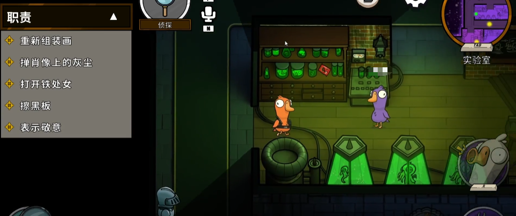 靠近目标使用技能,如果该玩家在当轮并未杀人,它的名字前面就会显示白色的小鸭子的图标,如果本轮杀过人,就会有红色鸭子图标出现。这个查验到本轮游戏结束之前,这个身份查验的效果都是不会有变动的,而每轮只能查验一个人。