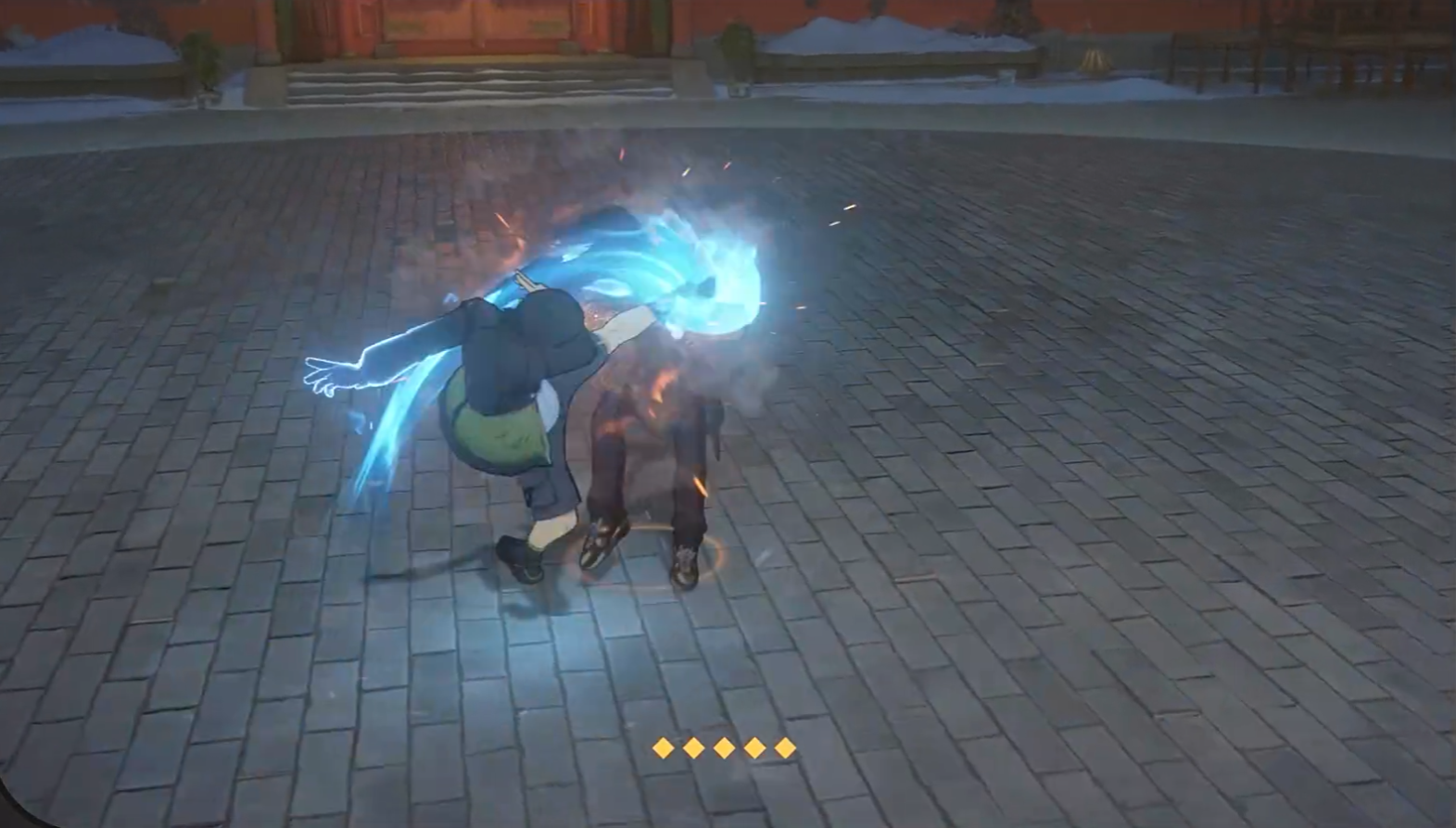 常技1“蝎子摆尾”,旋转身体甩踢敌人,后续接上拳掌攻击,再用蝎子脚将对手踢飞。常技2“迎门顶肘”,对着敌人的胸腹正门突进顶肘,之后追加两段推掌,将敌方目标距离推远。