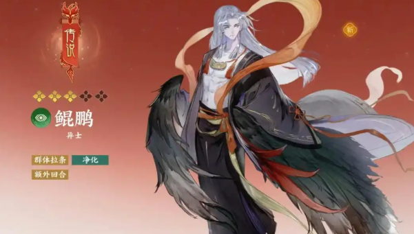鲲鹏非常独特,是目前唯一能在开局就全体加能量的角色,且7星后还能给所有队友,获得一次伤害免疫效果,不管是打PVP还是PVE都非常不错,唯一的缺点是到5星才能开局释放,7星才有免伤培养成本会比较高。