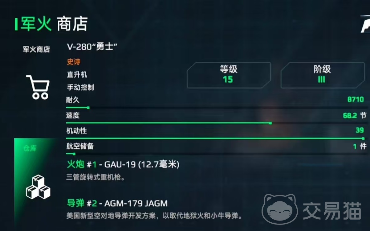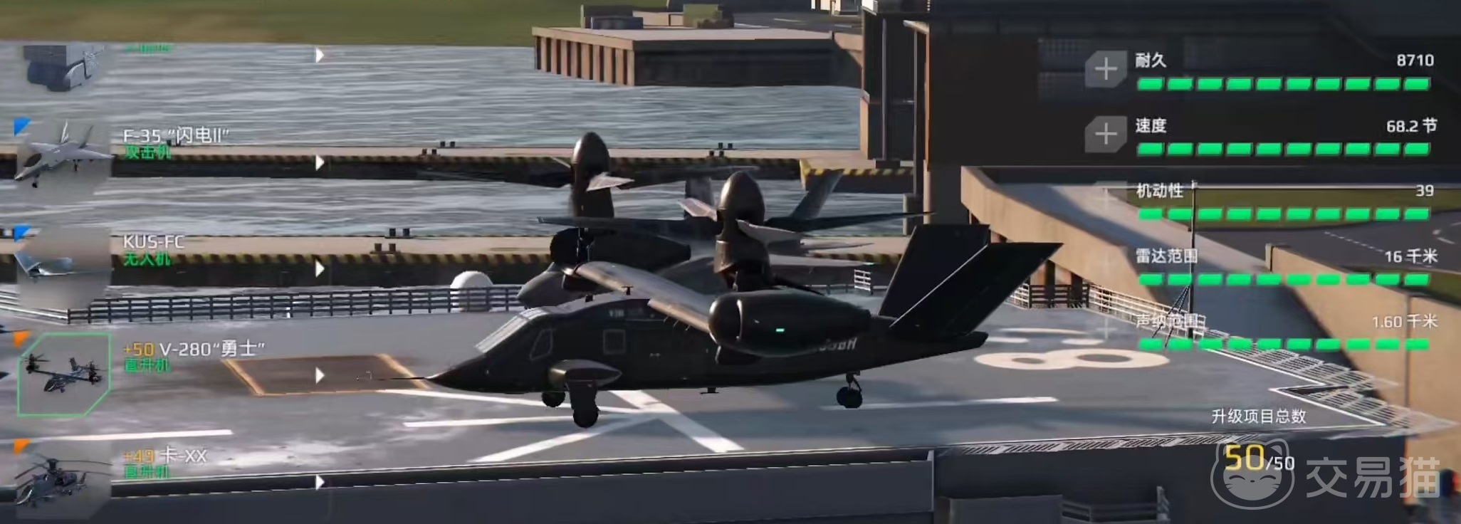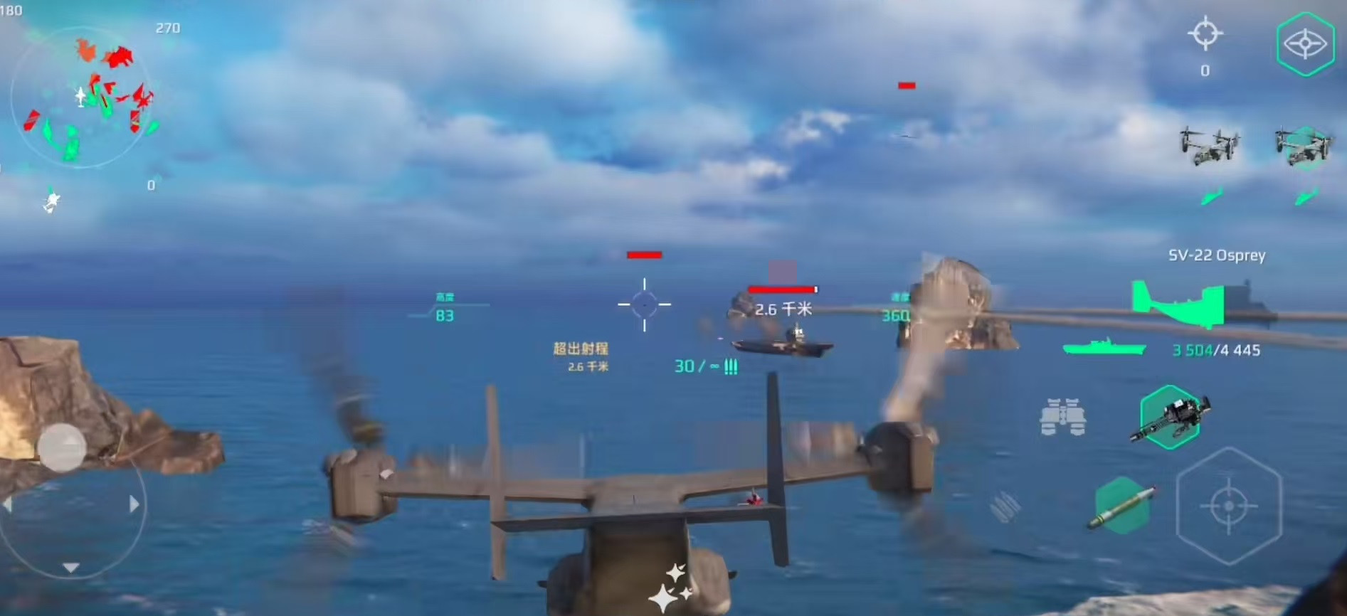 SV-22还搭配了鱼雷,每枚伤害达到2万,一共能够输出6轮,缺点是装填时间比较长,需要18秒才能再次发射,但出色的伤害能力已经足以使其傲视群雄。V-280作为三级直升机,可以当成是二级的强化版,武器更加丰富,拥有机炮、导弹和鱼雷,无论是在防空、反舰还是反潜等方面,都有着出色的功能。能够有效应对对方的飞机,对敌方舰艇也有一定的攻击能力,是海战过程中的多面手。