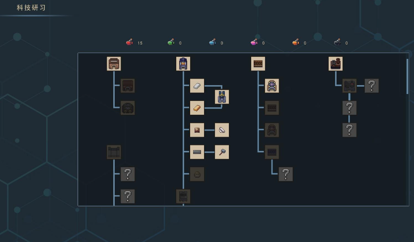 在科技研习这个界面中,小伙伴们也可以看到,其实有很多配方的获取方式都是在这里的,比如说钢板、钢管、钢筋混凝土、皮革、石砖、芯片、控制器等物品的配方,都需要通过在这里点亮技能树来获得。想要点亮技能树就需要消耗大量的基础材料,因此小伙伴们需要先把前面较为低级的技能树给升到满级,才能够解锁后面的这些配方哦。