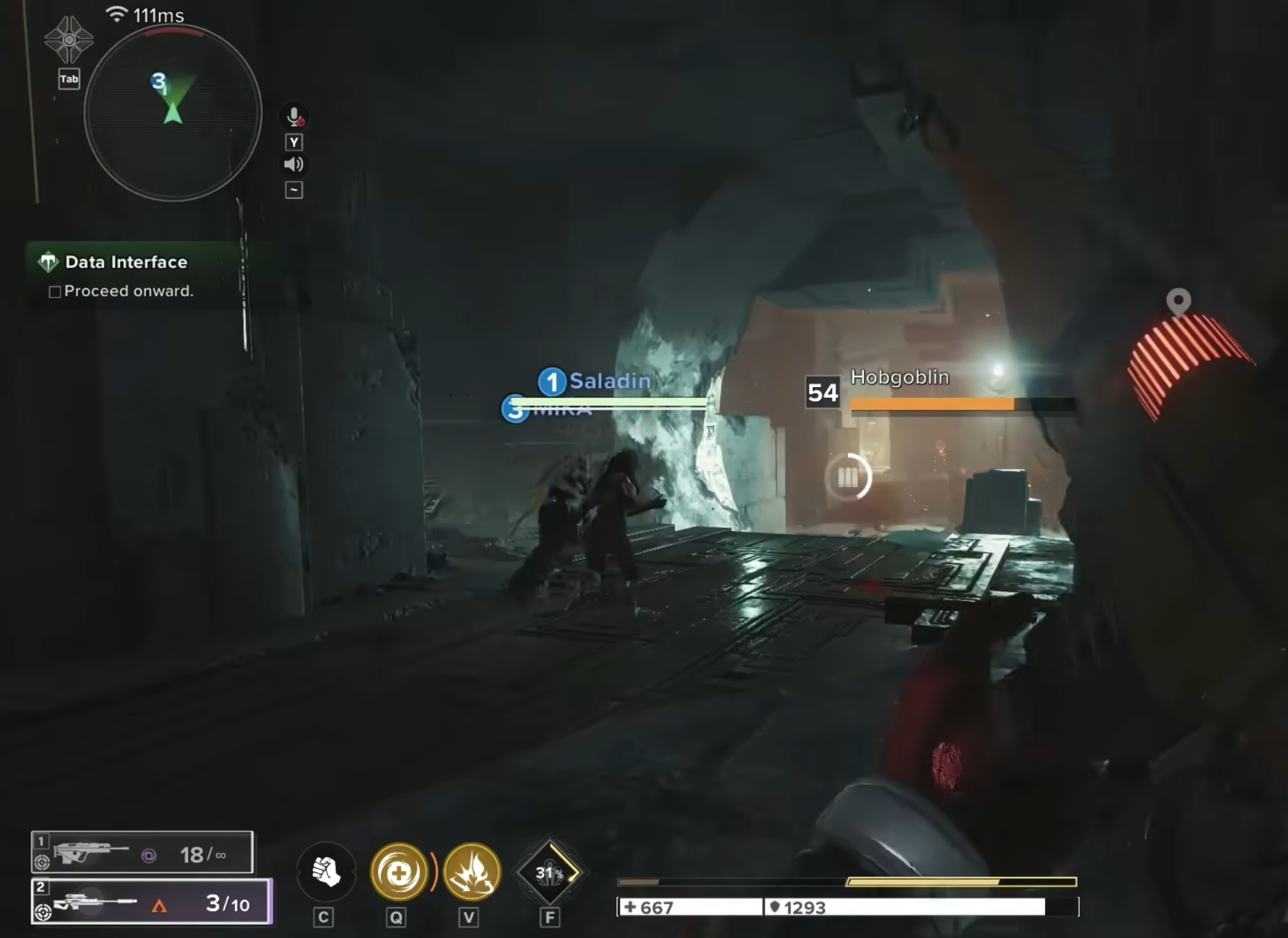 例如在Vex主题的打击副本中,在面对等级高于自己的敌人时,玩家自己一个人战斗将会异常艰难,而若能与其它两名队友相互配合,攻击敌方单位的弱点,那么整场副本的游戏难度将直线下滑。