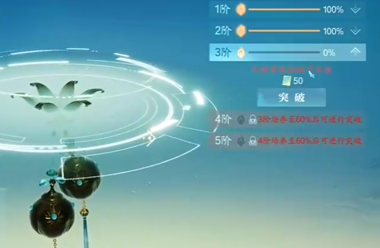 法宝培养能提升法宝带来的属性加成,这需要消耗灵汐宝玉,在培养度达到60%的时候,会需要我们进行一次突破解锁新的等阶,如果在游玩过程中,获取到了更好的同款法宝。