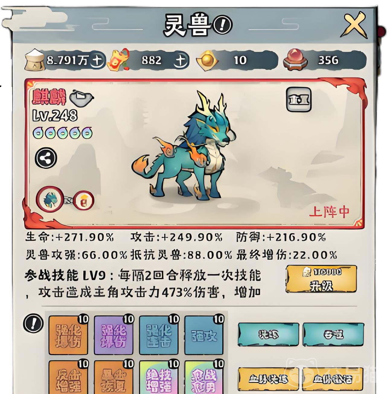 在获得了灵兽后对其进行培养,也能提升角色的攻击战力,在养成上同样也是尽可能选择高梯度的灵兽,如果是平民党的话建议选择云翅鸟,不仅获得难度低而且养成需求也不高,在战力加成上也有一定的提升。