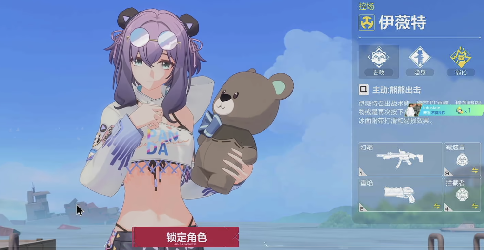 伊薇特是控场角色,能召唤熊协同作战,还有隐身效果,可制造冰柱为己方争取回复时间,使用“幻霜”冲锋枪,上手难度低,适合新手,主要限制敌人行动。