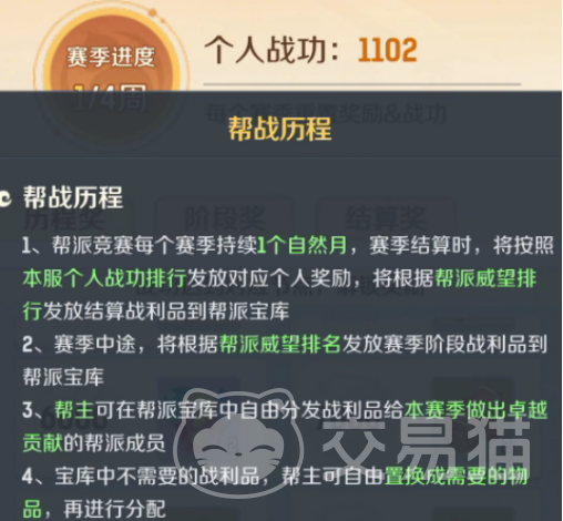 在整个赛季的图中,根据帮派威望排名发放相应的奖励,获得的奖励可直接到达宝库,不需要到其他地点去领取。所有帮主都可在帮派宝库当中自由分发战利品,直接发放到给本赛季具有较多贡献的帮派成员宝库当中。