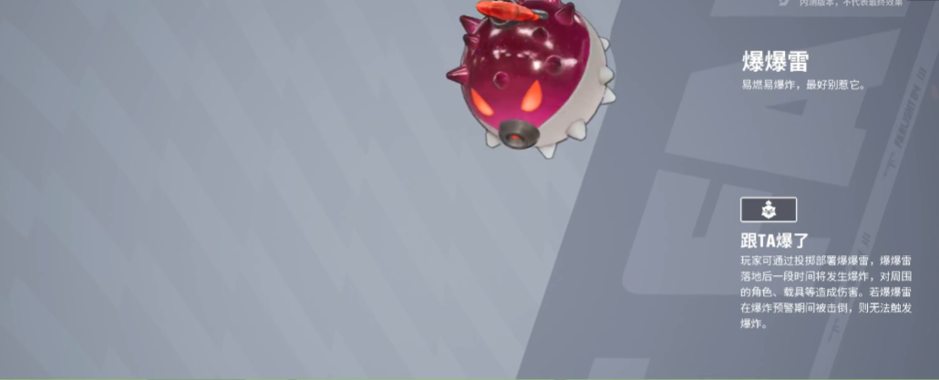 这是个长得就很像炸弹的宠物,投掷它就相当于投掷一枚远程的定时炸弹,炸弹爆炸有延迟,但是爆炸的范围非常大,且拥有多段伤害,这个宠物很适用于狭隘的地形,在房区,或者巷战进行战斗时,都很适宜使用,甚至效果是翻倍的,如果想将躲在掩体后面的敌人逼出来,它也能胜任,与罪霄这些角色很是契合,配合起来威力更大。
