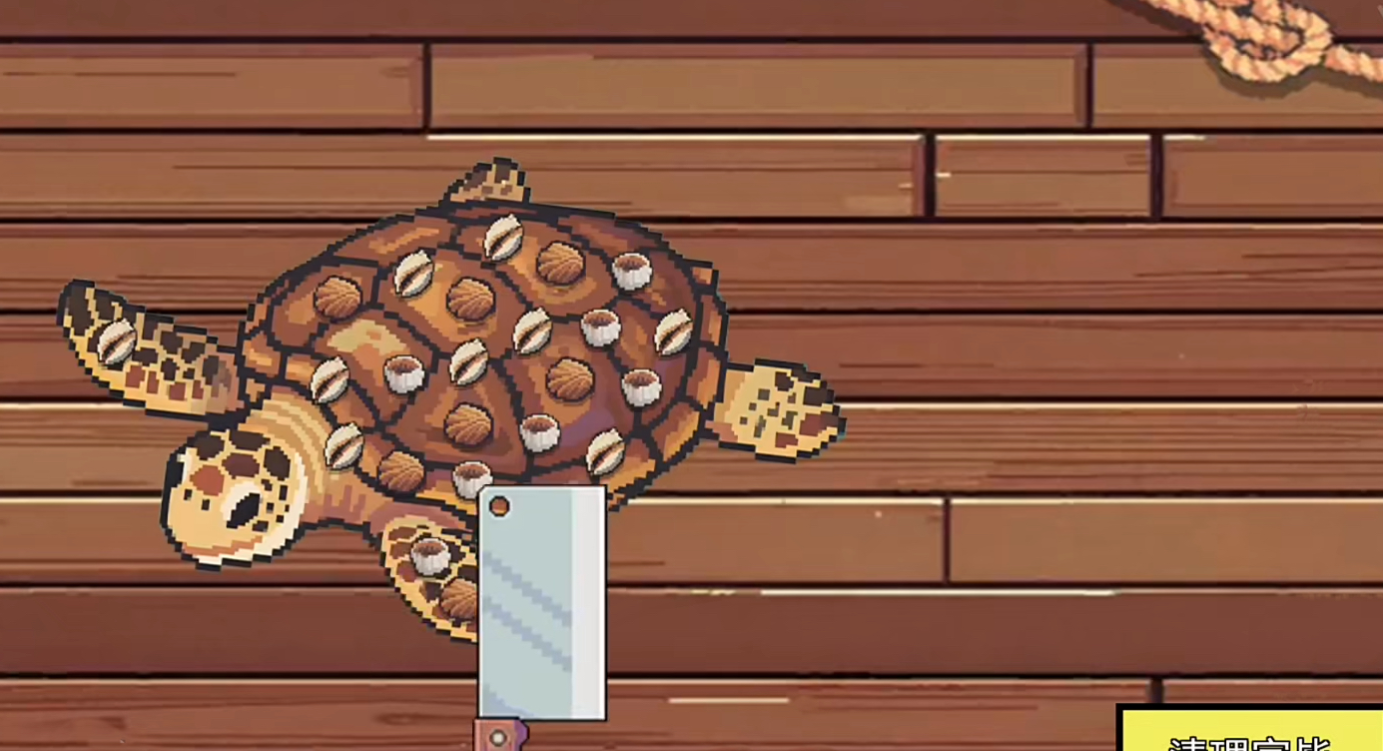 在藤壶的清理方面,海龟身上会附着很多的寄生生物,需要玩家使用刮刀,从左至右进行清理,但是速度不能够太快,如果太快的话,会伤害到海龟的皮肤,导致奖励的下降。