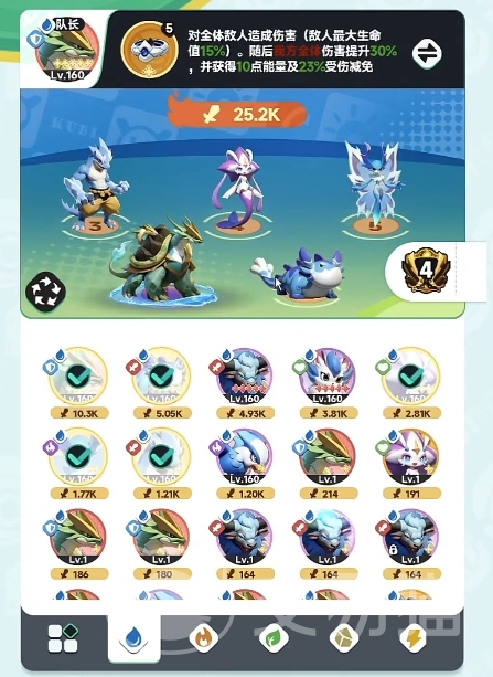 第二位泡泡龙,它则是一位防御性战士,既能在前排承受伤害,又能在关键时刻给予敌人有力的反击,而水灵儿,它的角色定位是辅助,能够在战斗中为队友提供各种增益效果,比如提高攻速和增加能量等,在这里建议大家将水灵儿作为队长,因为这样可以快速获取能量,要知道能量可是释放必杀技的前提,有了充足的能量,队伍在战斗中就能更频繁地释放出强力的必杀技,从而占据更大的优势。