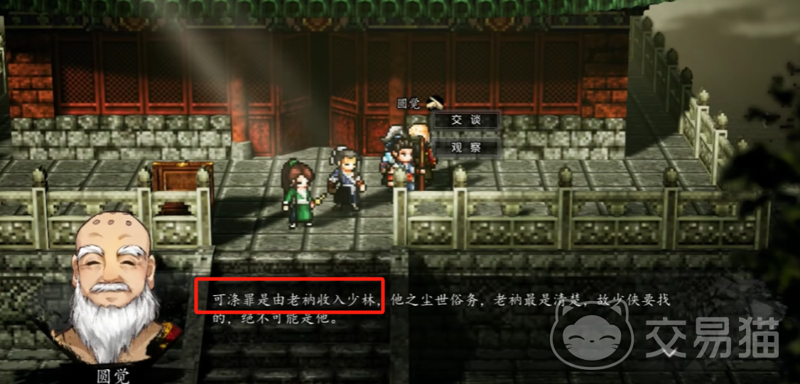 游戏的重要对话选择,是“帮助栾姑娘找到父亲” ,该任务的关键步骤是,先要前往到少林寺,和方丈对话,得知栾琼父亲的真实身份,实际上是涤罪僧,行至后山,亦或是前往到塔林处,寻找涤罪僧,在找到之后,玩家可以获得大还丹。