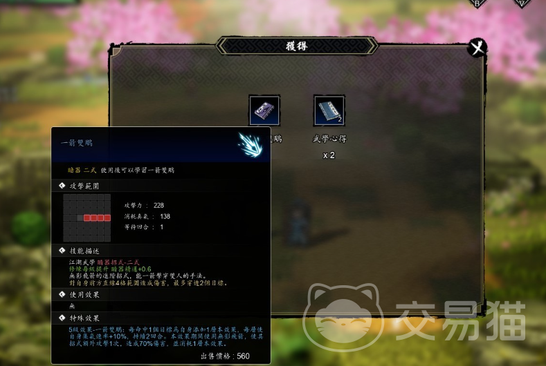 在剧情对话结束之后,好感度还可以直接提升到55,此时还可以获得一箭双雕武学。送出去两个金疮药,此时好感度就能提升到60,一旦提升到60就可以邀请他进入到队伍中,完成了这一次的任务。